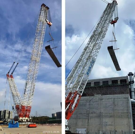 中核機械于2013年4月14日進行首吊,2019年7月27日完成最后一臺蒸汽發(fā)生器吊裝,截至2019年8月3日,總工期歷時約6年4個月,共組織3200噸、1350噸、1000噸、500噸等起重機械多臺次施工,期間多類型起重機械穿插配合。彰顯核電吊裝“主力軍”風采,不愧為CC70起重工程5年榜首企業(yè)。