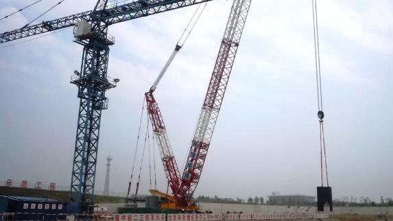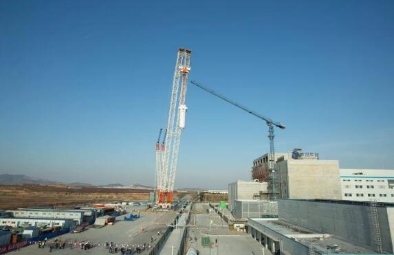 中核機械采用3200噸履帶吊完成石島灣核電堆芯殼吊裝