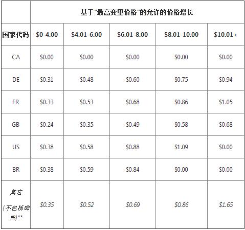 每個(gè)配送國家/地區(qū)允許的價(jià)格增長(zhǎng)取決于該產(chǎn)品的”最高變量?jī)r(jià)格“。