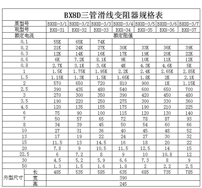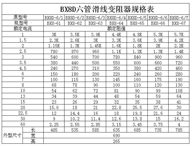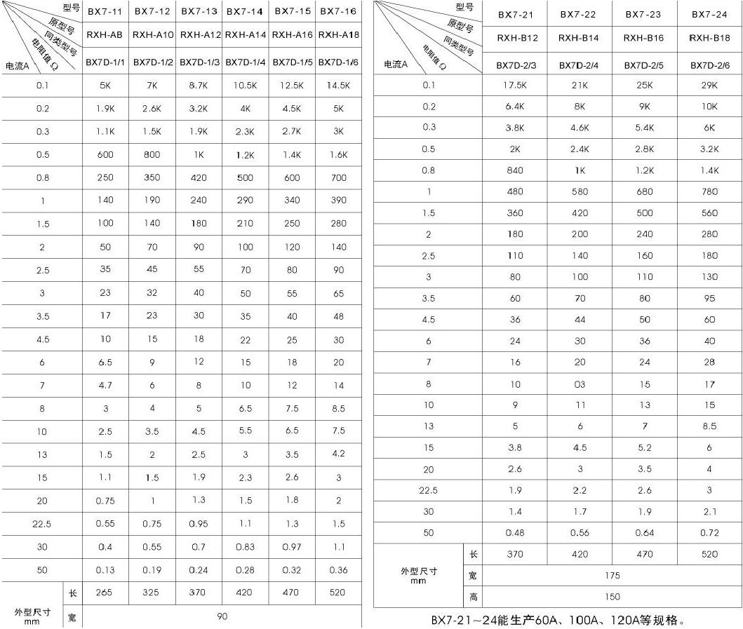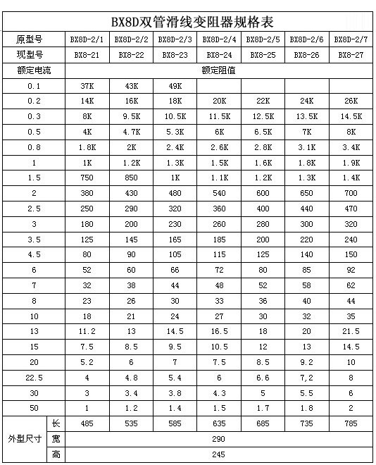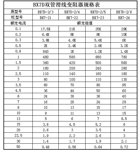 BX7系列滑線變阻器產(chǎn)品參數(shù)